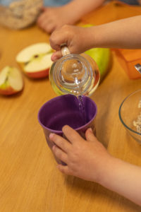 Nach dem sanften Wecken wird gewickelt, wir spielen, es gibt einen Snack, dann ist Abholzeit und wir gehen nach Hause.